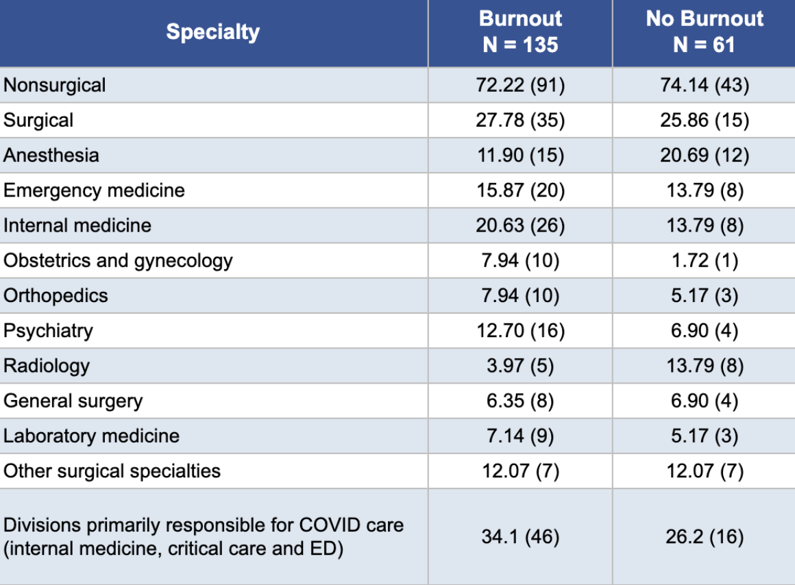 Data source: Differences in Physician Burnout by Specialty: A Cross-Sectional Survey